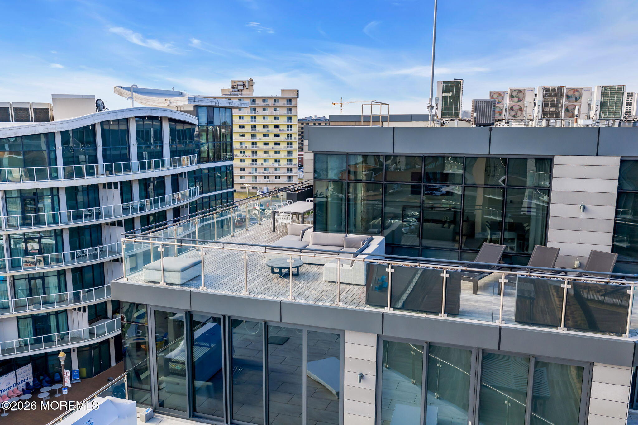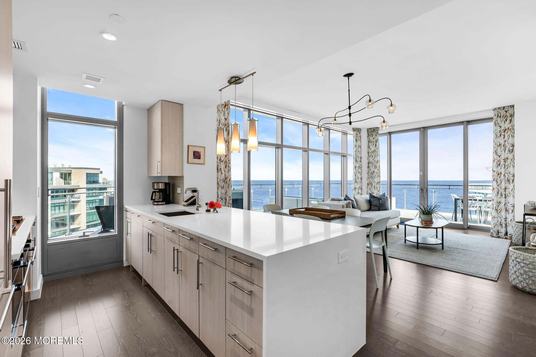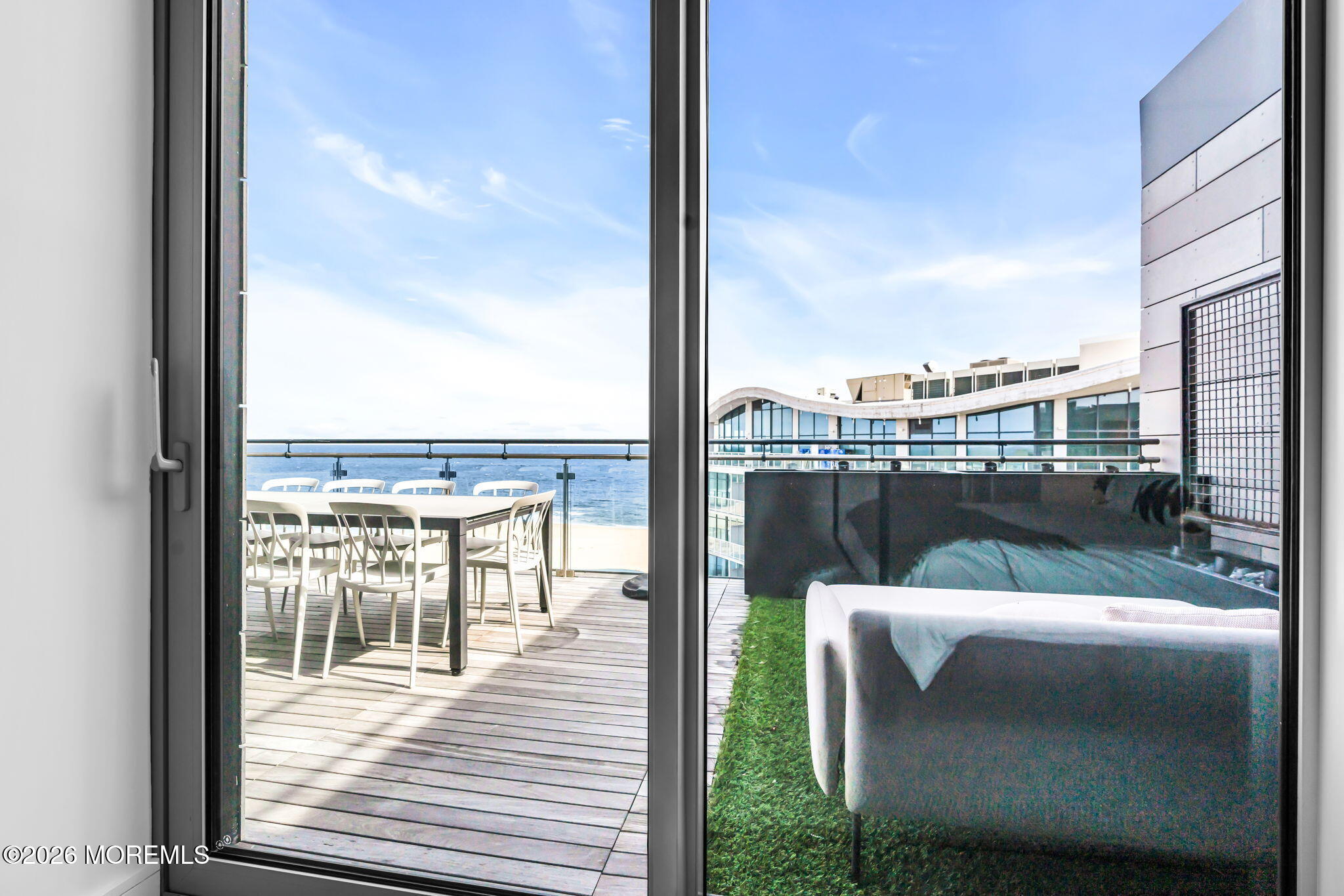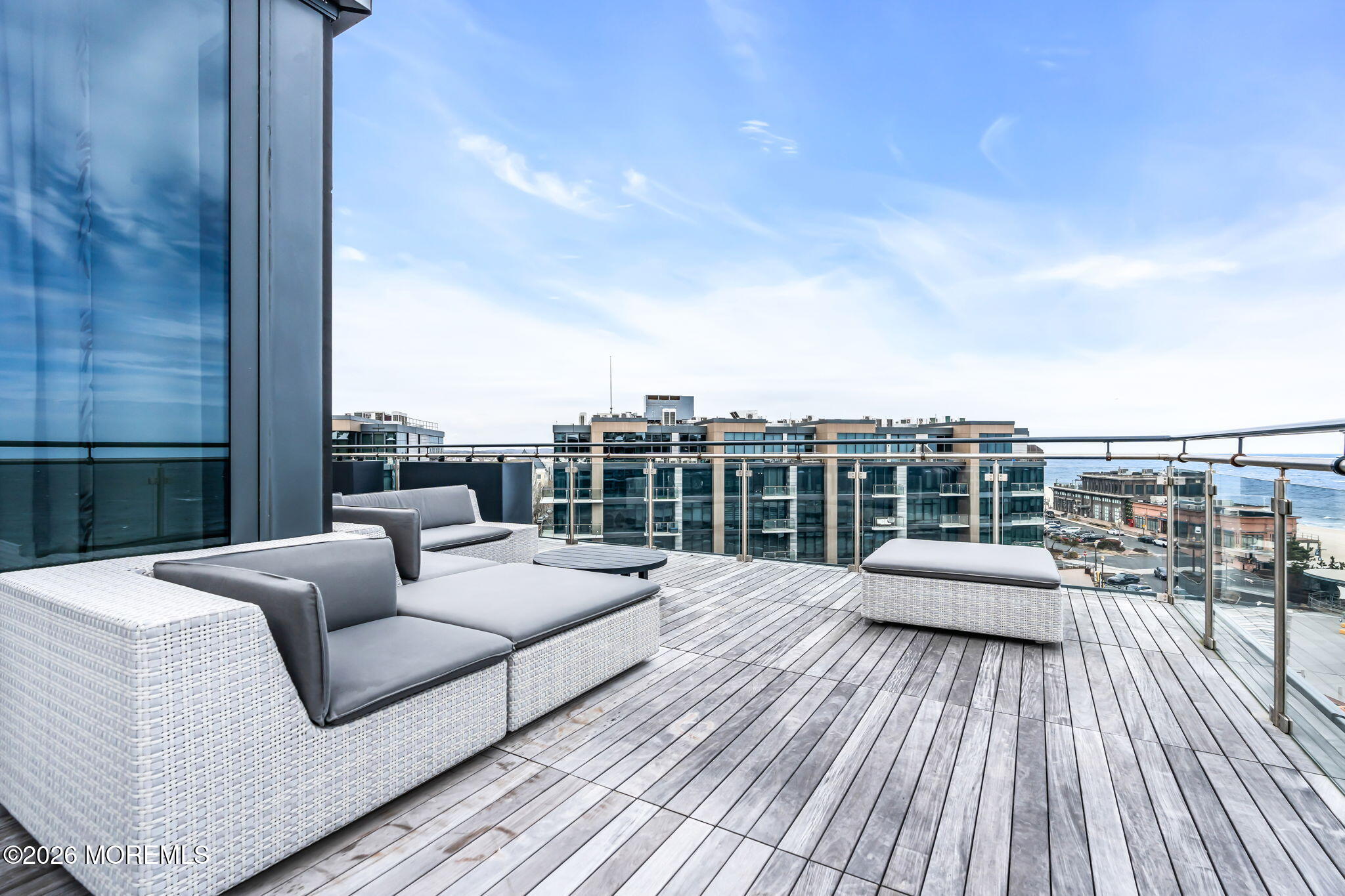 Rare opportunity to own THE penthouse residence at The Lofts at Pier Village. Perched on the top floor with 1,546 sf of beautifully appointed interior living, plus an extraordinary 1,233 sf wraparound terrace with sweeping ocean views. The open living & dining area flows seamlessly to the terrace through floor-to-ceiling glass. The designer kitchen is appointed with quartzite counters with waterfall edge & Miele appliances. The current owner has elevated the residence with a full Control4 smart home system managing lighting, audio, video & automated shades, custom California Closets, flood/temp sensors & a resort-quality decking system around the entire terrace. Includes 25 years of a coveted 30-year tax abatement and all furnishings, if desired. This is coastal living without compromise