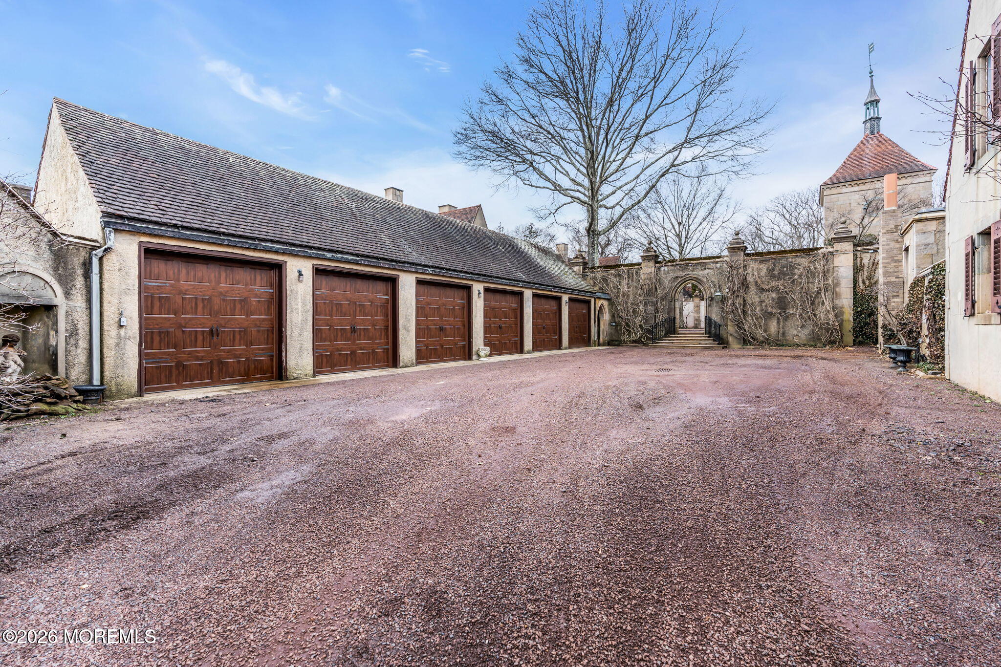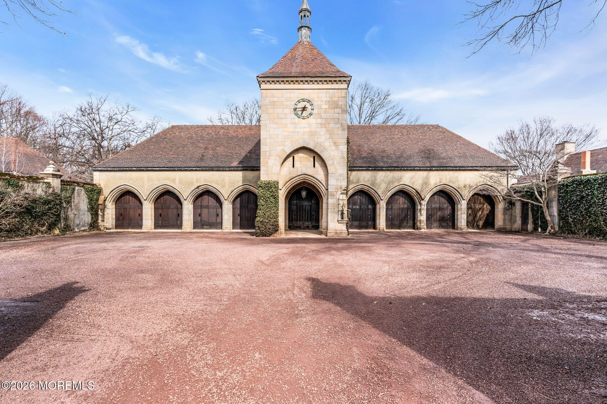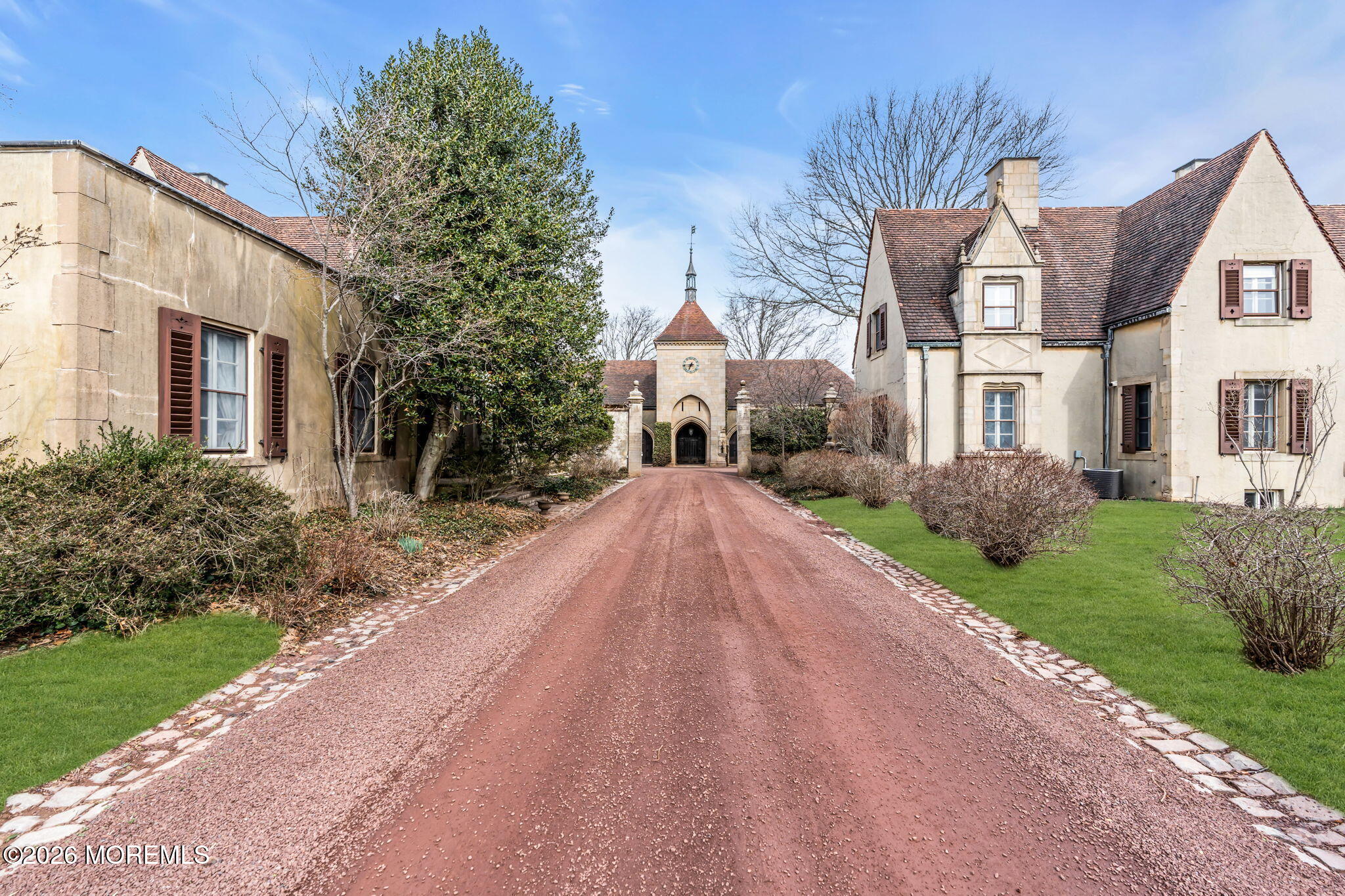 Step onto this rare 20-acre estate in Middletown, NJ, and the outside world simply disappears. 5 residences, A clock tower, Gothic arches, ivy-covered stone courtyards, Ludowici tile roofs, hand-carved oak doors & interconnecting pebble drives create the unmistakable feeling of a French chateau, yet at a romantic, human scale. Granite hitching posts, original stone fountains & a small barn with paddocks serve the property's horses, while wisteria & English ivy tumble over every wall. Beyond the courtyards, unbroken meadows & serene tree lines stretch as far as the eye can see. Designed by acclaimed architect Alfred Hopkins, with landscapes by Martha Brookes Hutcheson, one of America's first women landscape architects, the estate was built for Herbert Straus of the Macy's family. With rare Titanic provenance & offered for the first time since 1949, Tower Hill Farm is one of NJ's last authentic links to the Gilded Age.