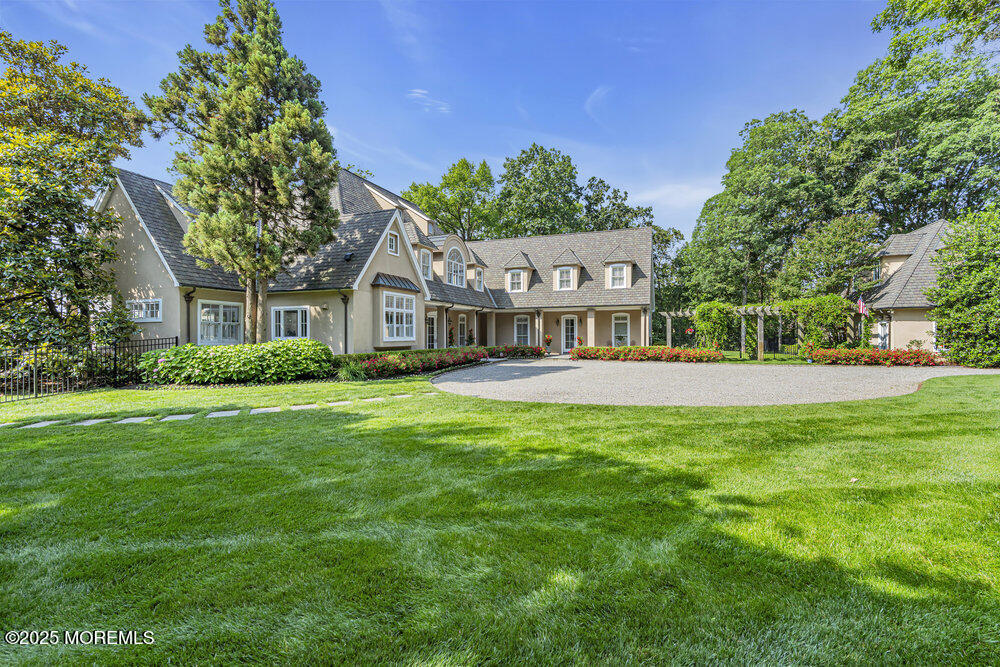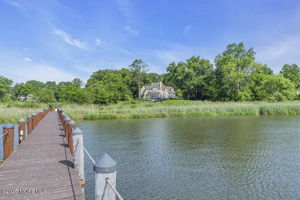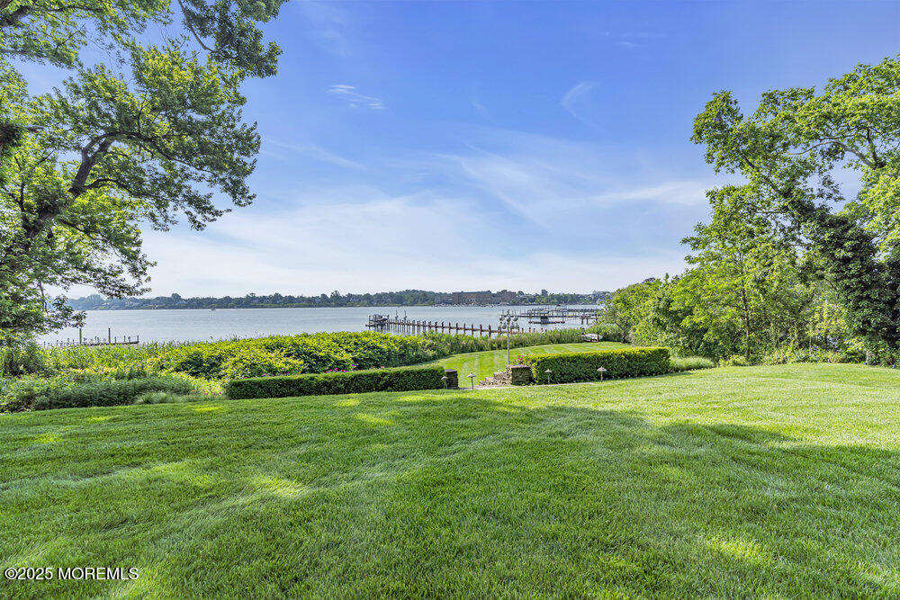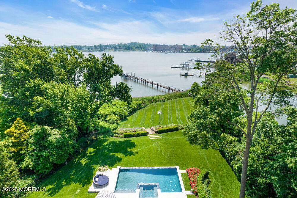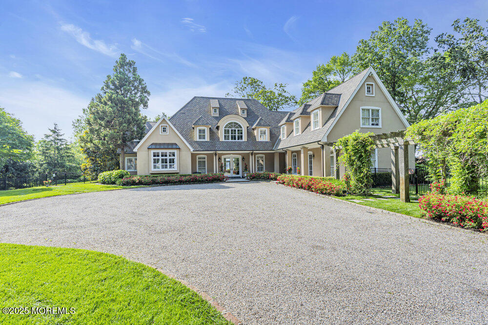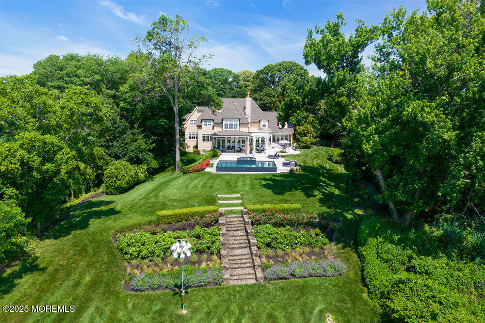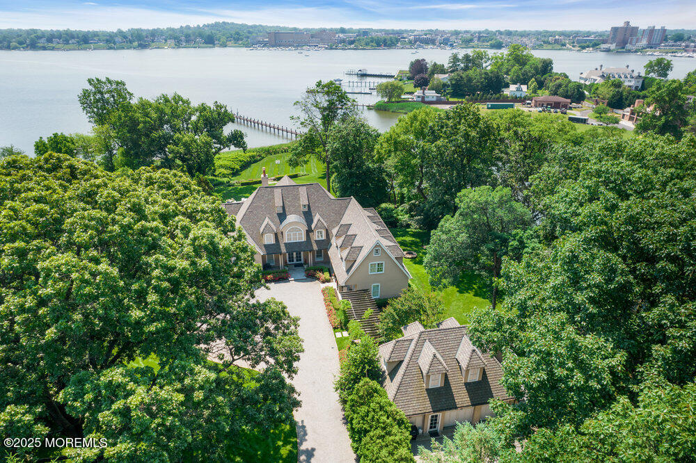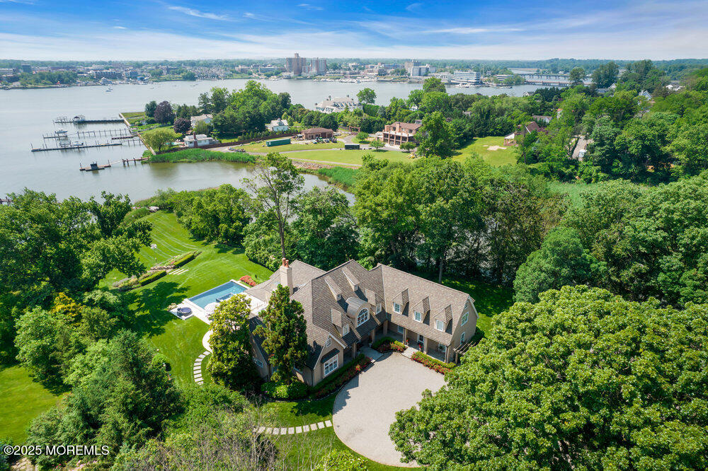 At the end of one of Monmouth Cty's most sought-after streets, this gated Navesink Riverfront estate combines privacy, luxury, & natural beauty in one extraordinary offering. The home spans 6,507 sq. ft. plus a 2400 sq ft finished lower level w/ two guest ''spaces'', each with a full bath, & a gym above the 3 car garage that could convert to a caretaker's or family apartment. Designed for both grand entertaining & everyday comfort, the flexible floor plan includes a 1st floor in-law suite, a beautiful newer custom chef's kitchen a La Cornue range & high-end appliance, an open floorplan & 4 bedrooms upstairs, highlighted by a spacious primary suite with a balcony, fireplace & updated bath. Outdoors, the property feels like a private resort w/ a spectacular edgeless pool, spa, dock & boat lift, gas fire table and lush landscaping. Wildlife such as purple martins, osprey, and deer enhance the serene waterfront setting. The new stucco siding ensures the home is as fresh as it is timeless. A rare opportunity to own a true sanctuary on the water!