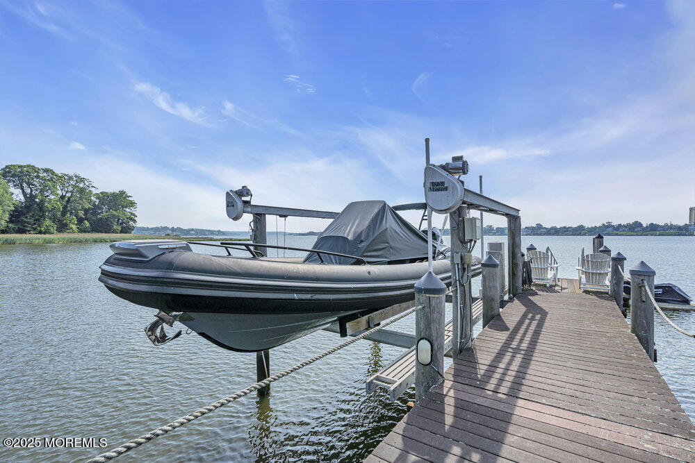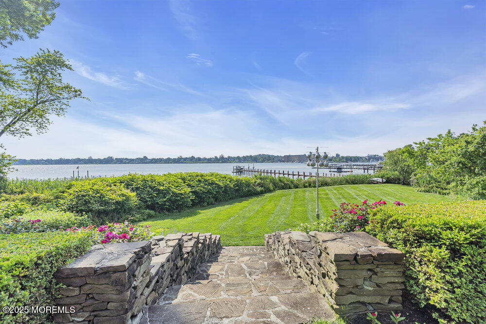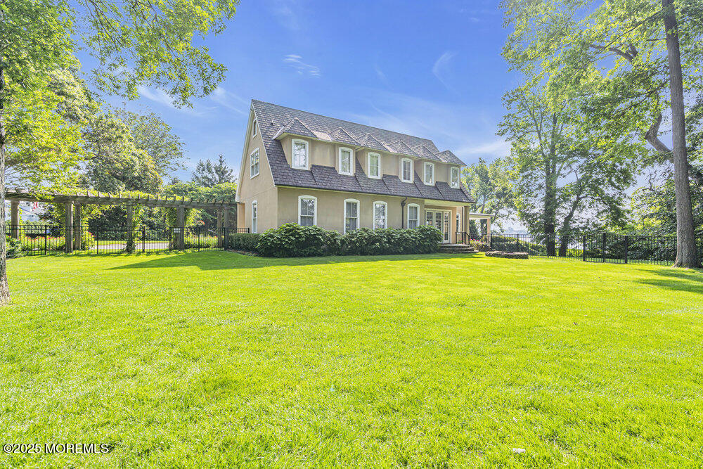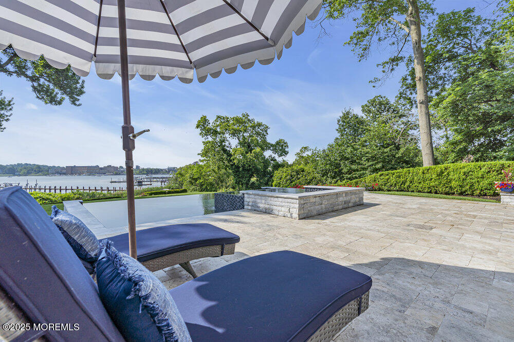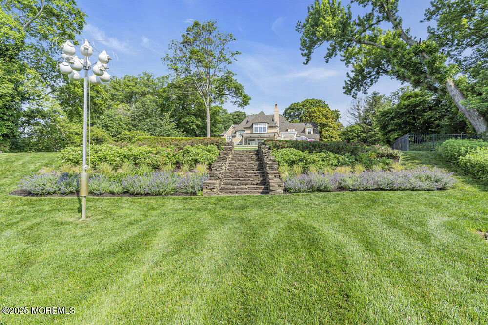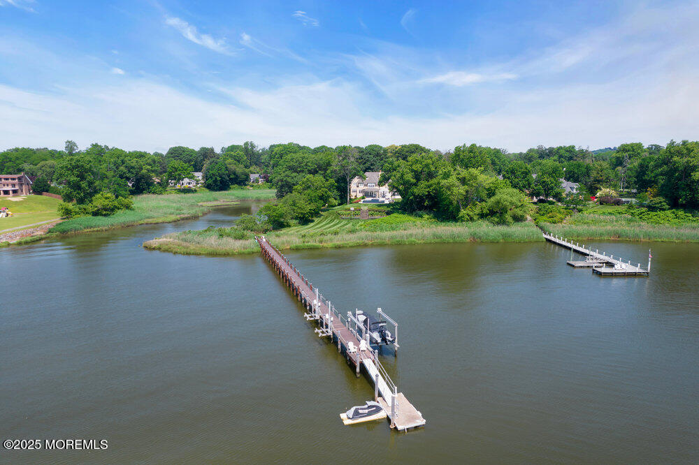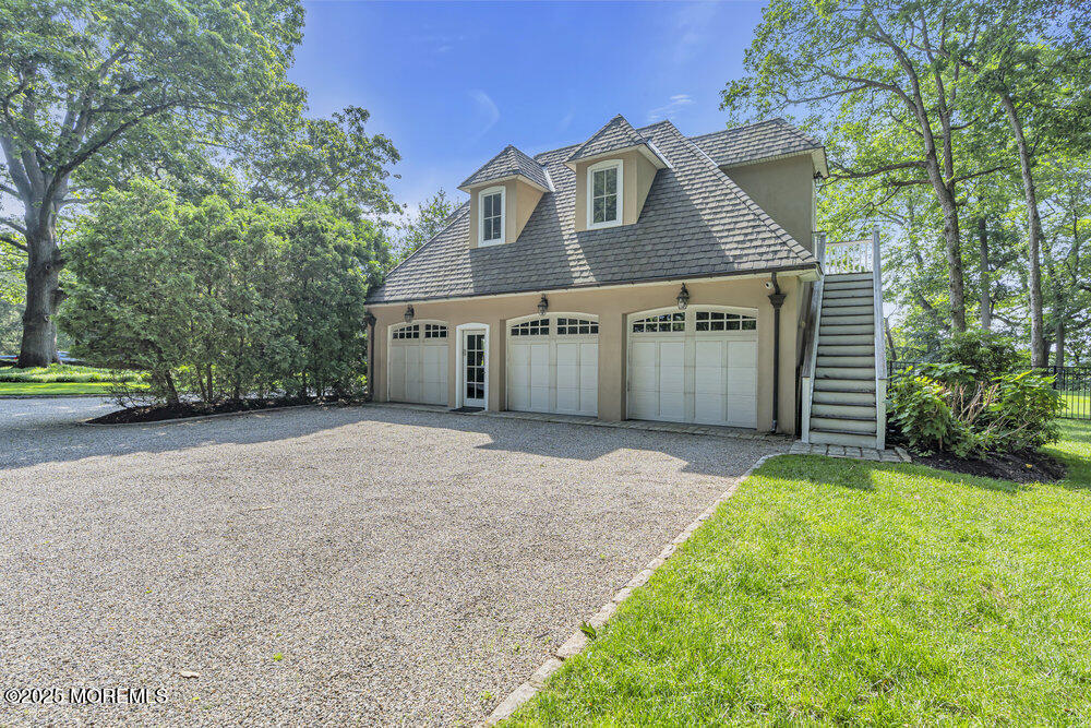 At the end of one of Monmouth Cty's most sought-after streets, this gated Navesink Riverfront estate combines privacy, luxury, & natural beauty in one extraordinary offering. The home spans 6,507 sq. ft. plus a 2400 sq ft finished lower level w/ two guest ''spaces'', each with a full bath, & a gym above the 3 car garage that could convert to a caretaker's or family apartment. Designed for both grand entertaining & everyday comfort, the flexible floor plan includes a 1st floor in-law suite, a beautiful newer custom chef's kitchen a La Cornue range & high-end appliance, an open floorplan & 4 bedrooms upstairs, highlighted by a spacious primary suite with a balcony, fireplace & updated bath. Outdoors, the property feels like a private resort w/ a spectacular edgeless pool, spa, dock & boat lift, gas fire table and lush landscaping. Wildlife such as purple martins, osprey, and deer enhance the serene waterfront setting. The new stucco siding ensures the home is as fresh as it is timeless. A rare opportunity to own a true sanctuary on the water!
