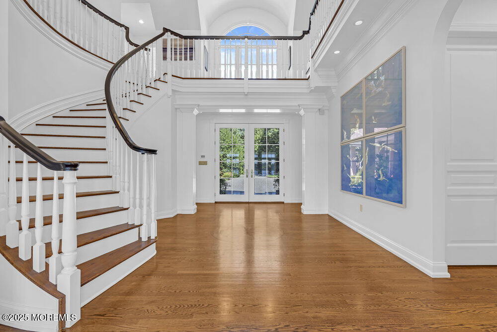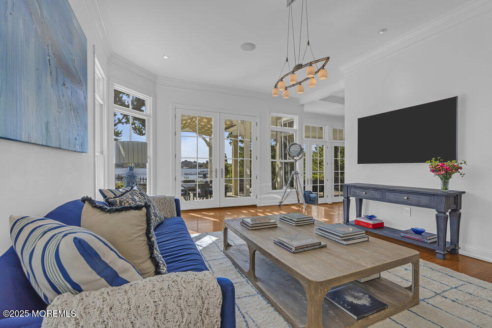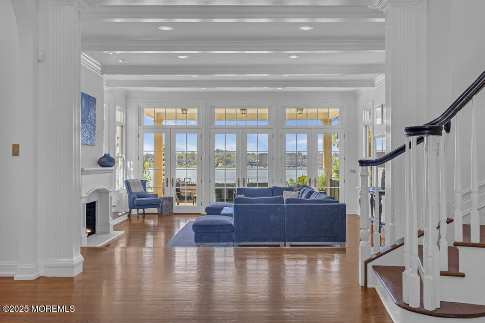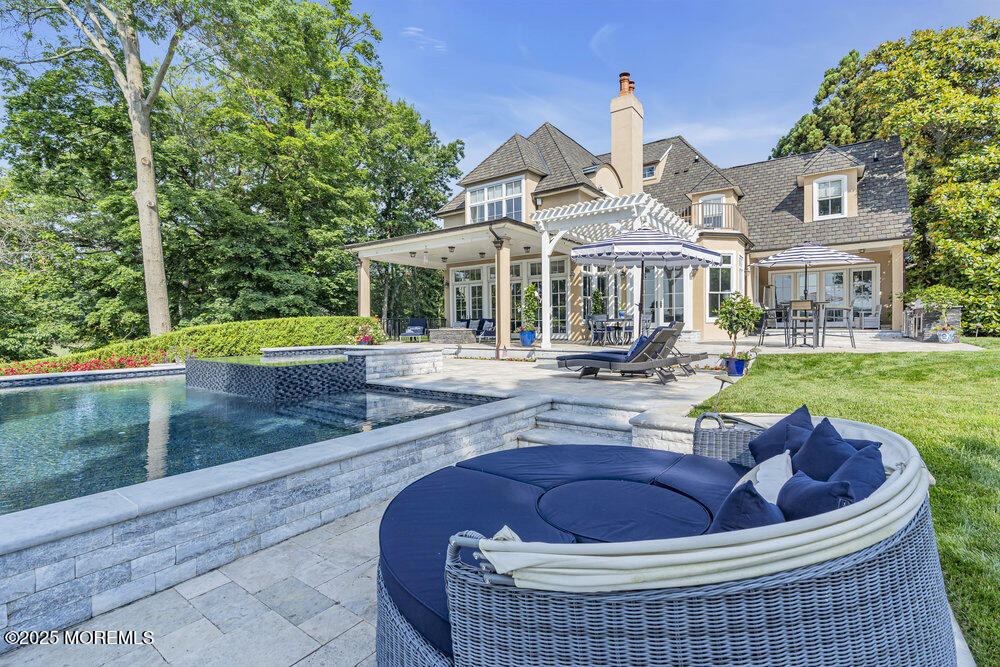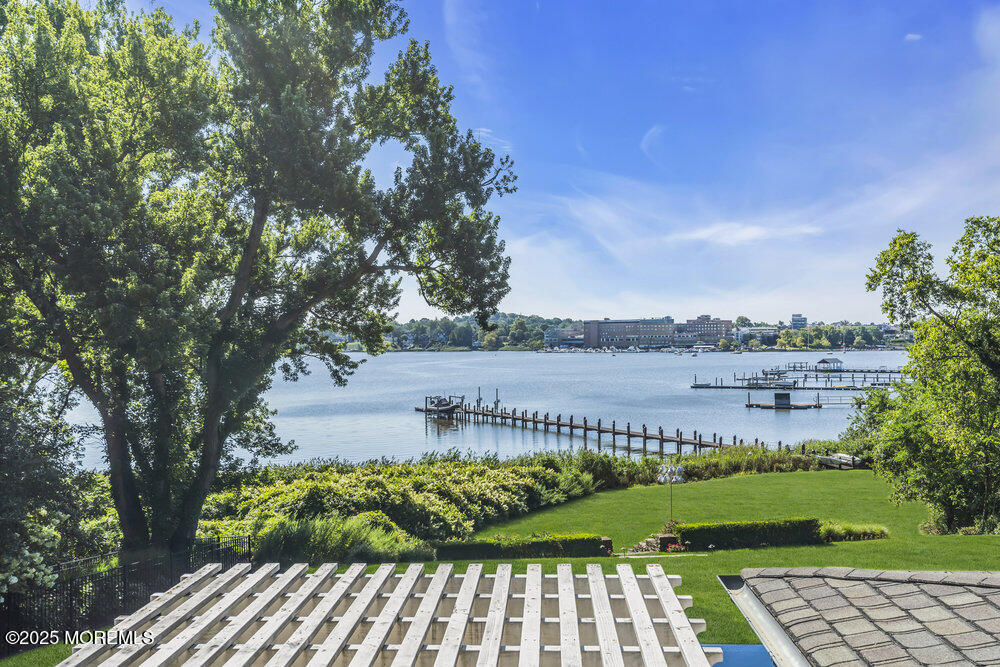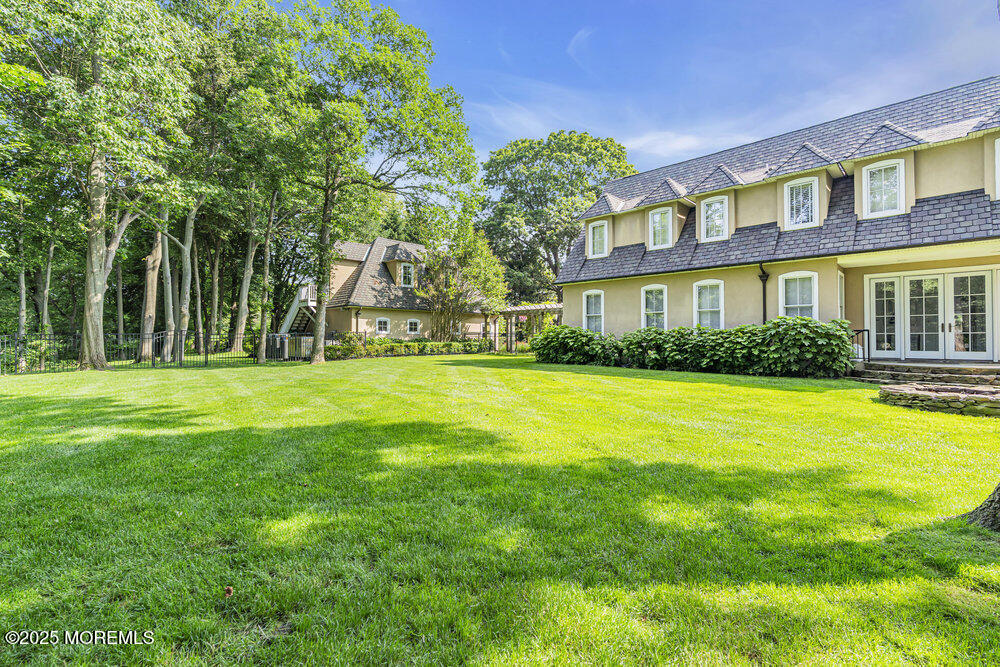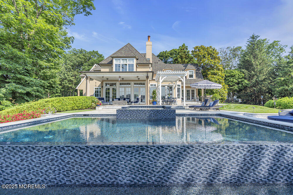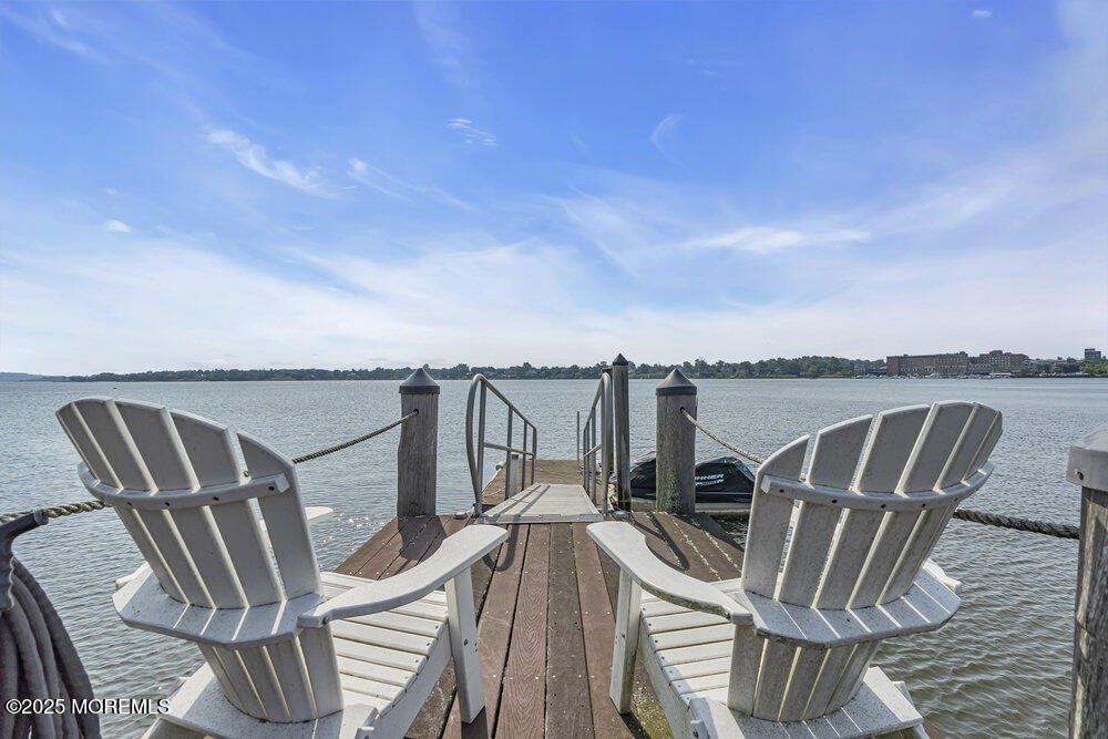 At the end of one of Monmouth Cty's most sought-after streets, this gated Navesink Riverfront estate combines privacy, luxury, & natural beauty in one extraordinary offering. The home spans 6,507 sq. ft. plus a 2400 sq ft finished lower level w/ two guest ''spaces'', each with a full bath, & a gym above the 3 car garage that could convert to a caretaker's or family apartment. Designed for both grand entertaining & everyday comfort, the flexible floor plan includes a 1st floor in-law suite, a beautiful newer custom chef's kitchen a La Cornue range & high-end appliance, an open floorplan & 4 bedrooms upstairs, highlighted by a spacious primary suite with a balcony, fireplace & updated bath. Outdoors, the property feels like a private resort w/ a spectacular edgeless pool, spa, dock & boat lift, gas fire table and lush landscaping. Wildlife such as purple martins, osprey, and deer enhance the serene waterfront setting. The new stucco siding ensures the home is as fresh as it is timeless. A rare opportunity to own a true sanctuary on the water!
