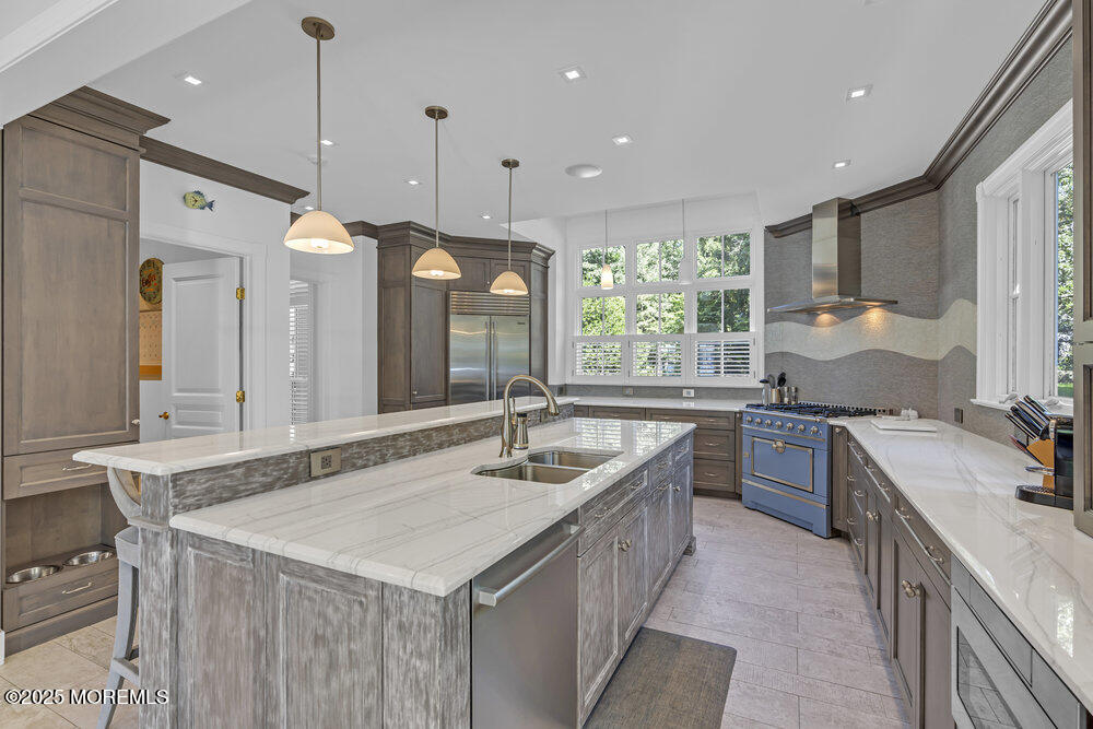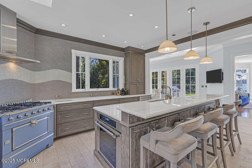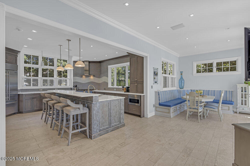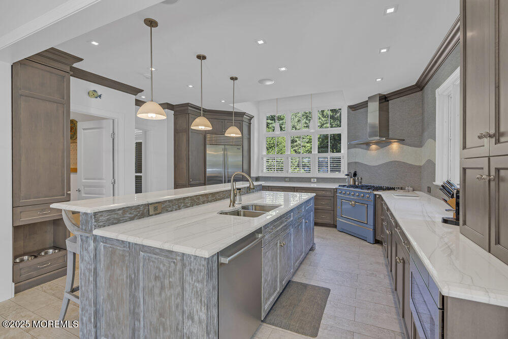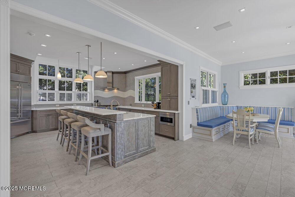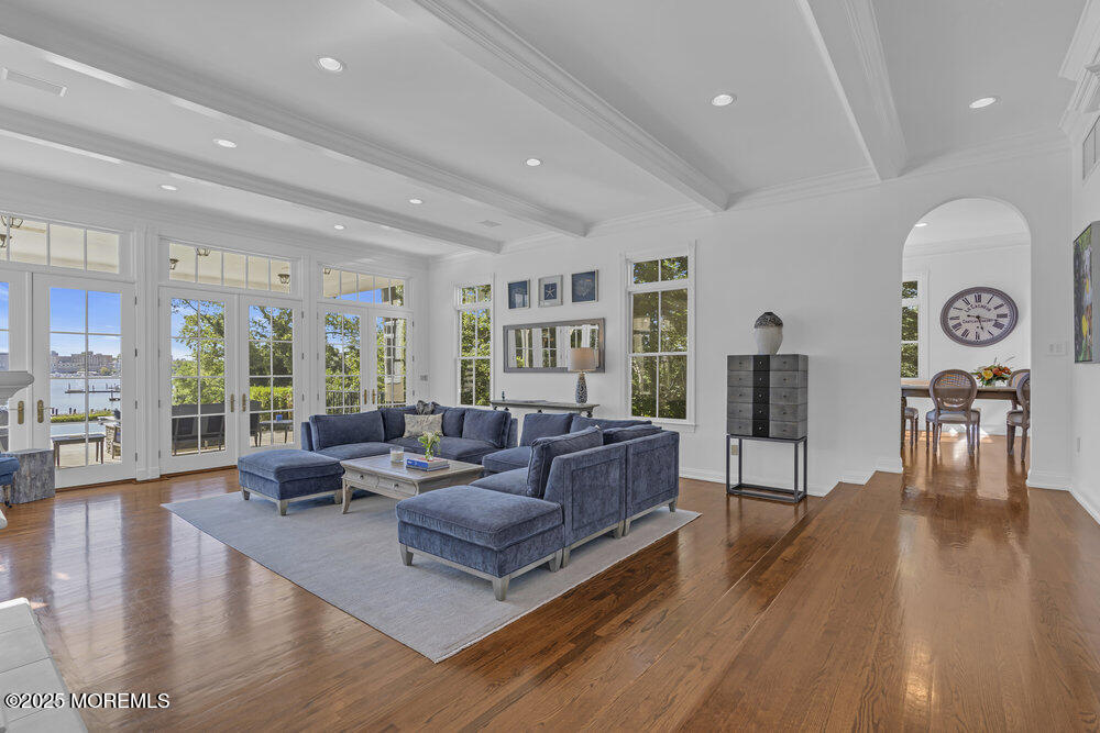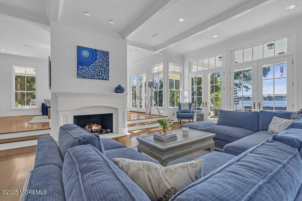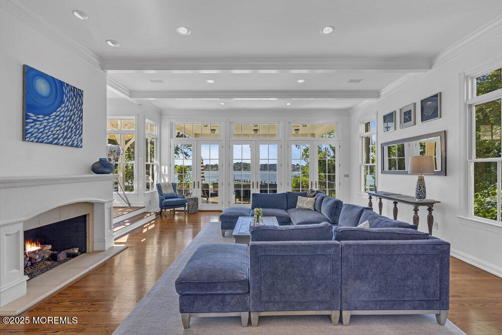 At the end of one of Monmouth Cty's most sought-after streets, this gated Navesink Riverfront estate combines privacy, luxury, & natural beauty in one extraordinary offering. The home spans 6,507 sq. ft. plus a 2400 sq ft finished lower level w/ two guest ''spaces'', each with a full bath, & a gym above the 3 car garage that could convert to a caretaker's or family apartment. Designed for both grand entertaining & everyday comfort, the flexible floor plan includes a 1st floor in-law suite, a beautiful newer custom chef's kitchen a La Cornue range & high-end appliance, an open floorplan & 4 bedrooms upstairs, highlighted by a spacious primary suite with a balcony, fireplace & updated bath. Outdoors, the property feels like a private resort w/ a spectacular edgeless pool, spa, dock & boat lift, gas fire table and lush landscaping. Wildlife such as purple martins, osprey, and deer enhance the serene waterfront setting. The new stucco siding ensures the home is as fresh as it is timeless. A rare opportunity to own a true sanctuary on the water!